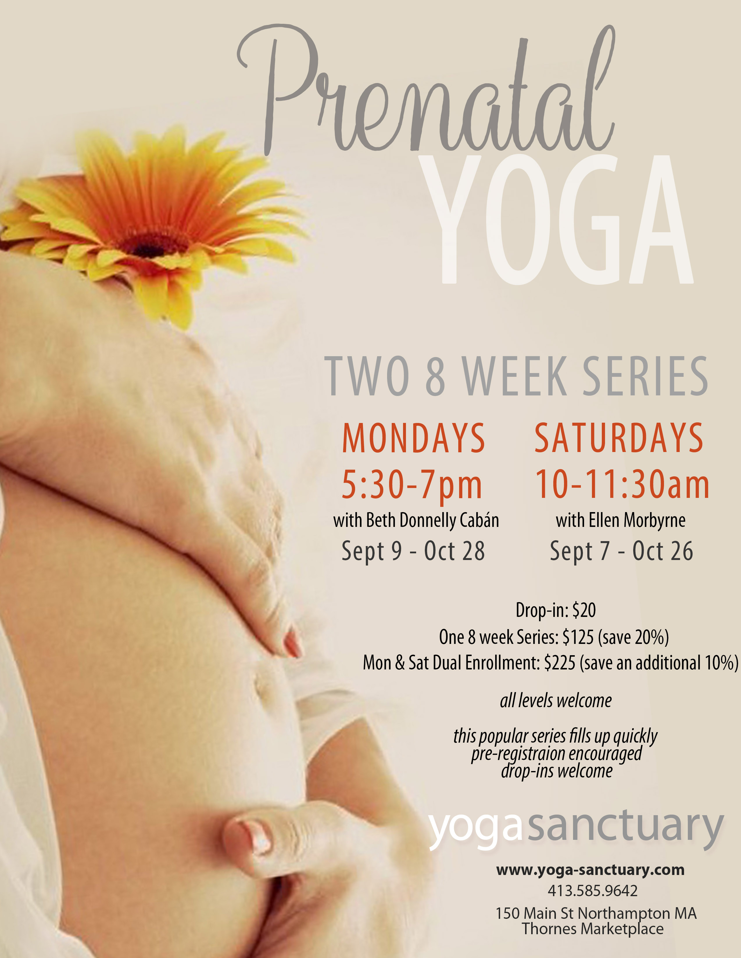 An 8 week series designed to safely address the unique demands of pregnancy and childbirth on physical, emotional and spiritual levels.**there are still spaces available in this seriesenroll online or call the studio at 413-585-9642 to registerDrop-in: $20One 8 week series: $130 (save 20%)Duel Enrollment: $230 (save an additional 10%)*mat rental included*www.yoga-sanctuary.com/yoga-for-pregnancy