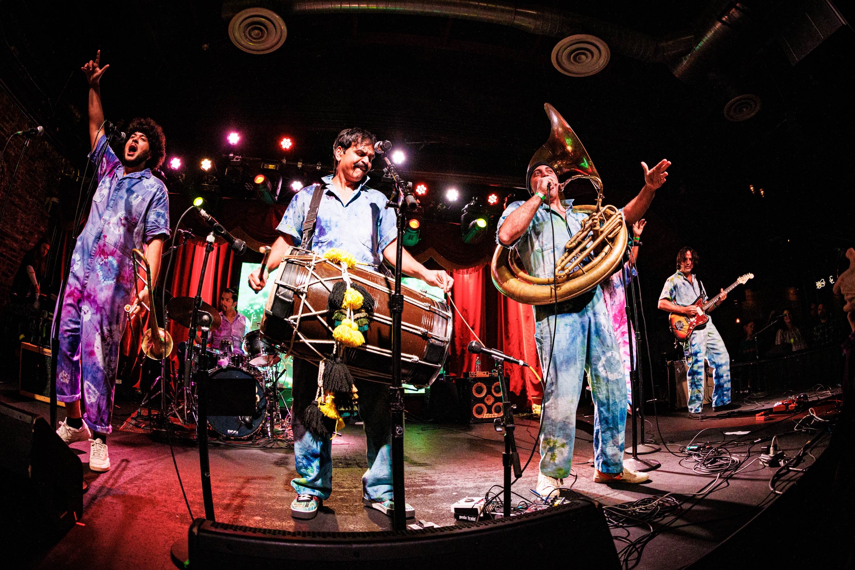 Then the release of Red Baraat’s 2nd album in 2013, Shruggy Ji, debuted at #1 on the Billboard World Music charts and propelled the band on a nonstop world tour that only halted in 2020 as a result of the pandemic. There are too many performances to recount, but they clock in at over 700 clubs and festivals worldwide. One special moment of note was in 2015 at Peter Gabriel’s WOMAD festival in UK. The band magically stopped a 2-day continuous downpour, parted the clouds and brought the sun out at as thousands danced in their galoshes.
